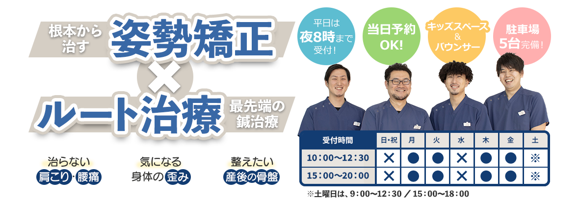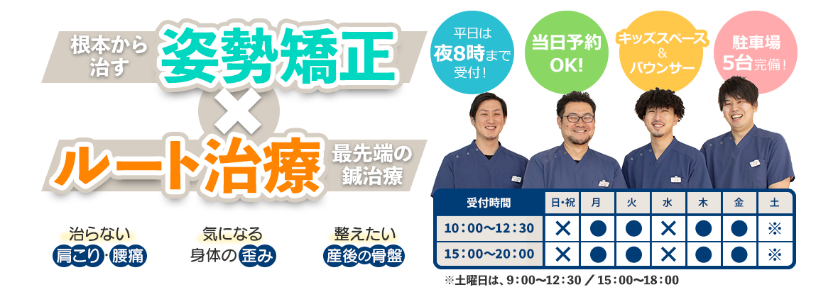 ほうてん駅前整骨院・鍼灸院では、痛みや不調の「根本原因」にアプローチする“ルート鍼治療”を行っています。筋肉の深層にたまったコリや癒着に直接働きかけ、慢性的な肩こり・腰痛・自律神経の乱れなどに高い効果が期待できます。一般的な鍼とは異なり、その場しのぎではなく、長年の悩みに本気で向き合う治療です。「本気で治したい」という方にこそ受けていただきたい施術です。初めての方も丁寧にご説明いたしますので、安心してご相談ください。